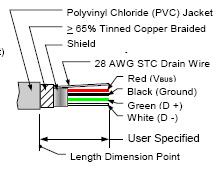 电缆的最大长度取决于信号延迟和信号完整性。标准电缆符合如图所示的颜色编码。