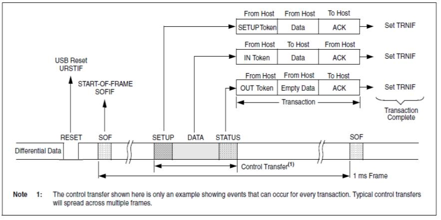 控制传输用于主机和 EP0 功能(设备)之间的通信。例如,第 9 章中的命令事务,如 SetAddress、Getdescriptor、SetDescriptor 等。