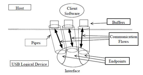 设备枚举完毕且端点配置完成后,逻辑通信安排如下图所示。