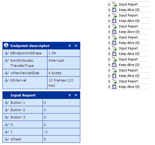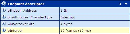 下图显示了光电鼠标中断端点的端点描述符以及端点的周期性轮询。