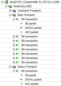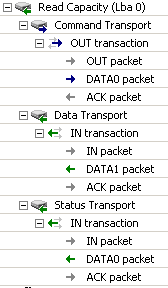 下图清晰地展示了SCSI命令是如何嵌入到USB传输中的。