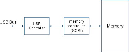 典型的U盘会有一个遵循SCSI协议的内存控制器接口。SCSI协议与USB类似,用于在逻辑块地址级别对内存进行完全控制。因此,枚举完成后,设备(U盘)会作为从设备响应主机发出的SCSI命令。