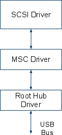 MSC接口驱动程序的主要部分是对实际SCSI驱动程序的封装。SCSI驱动程序会向MSC驱动程序发送请求,这些请求随后由根集线器驱动程序(RHD)通过USB传输。然而,SCSI驱动程序无需了解USB协议或结构。它可以调用MSC驱动程序API,进而向RHD发送请求。另一方面,RHD也无需了解任何SCSI或MSC特有的实现细节。