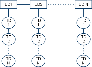 设备枚举完成后,主机上会为该设备生成一个端点数据描述符。这可以看作是链表的头节点,链表中包含要传输到特定设备端点的数据。附加到该端点的是传输描述符,其中包含要发送到端点的数据。客户端软件(设备驱动程序)请求中包含的数据将作为传输描述符附加。