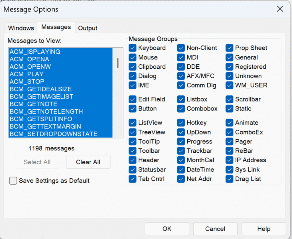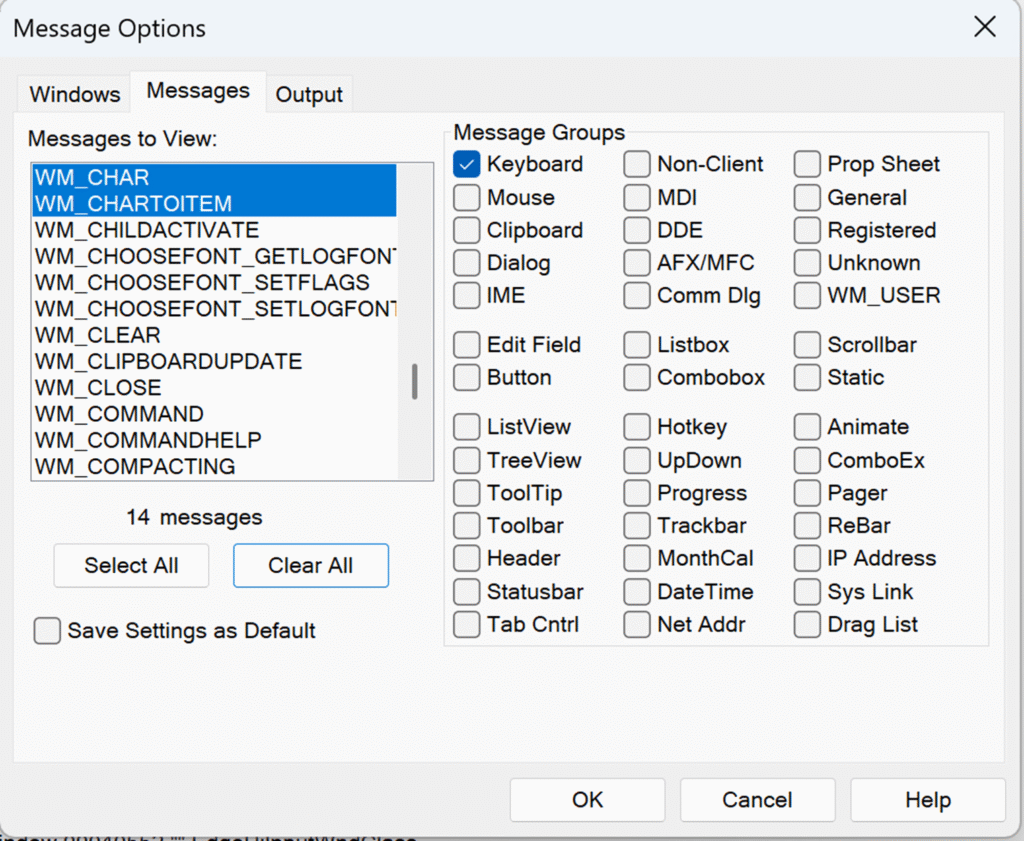 5.打开之后默认是全选的,我们需要只监视 KeyBoard 消息