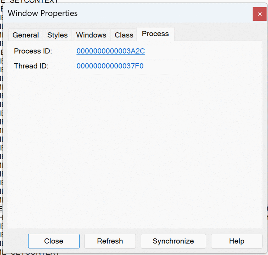 9.跳到 Process Tab 页面,先点击Synchronize按钮,再点 Process ID