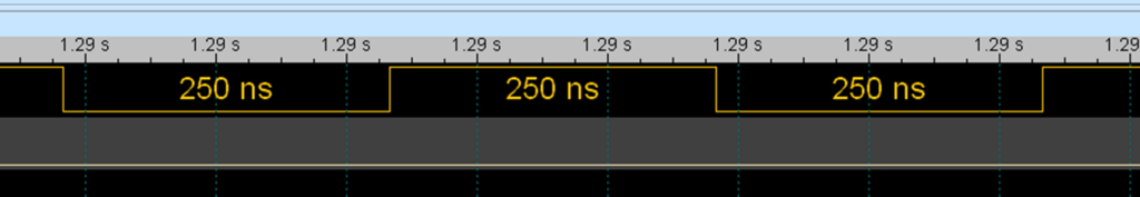 放大可以看到从低->高或者高->低,最少需要 250ns