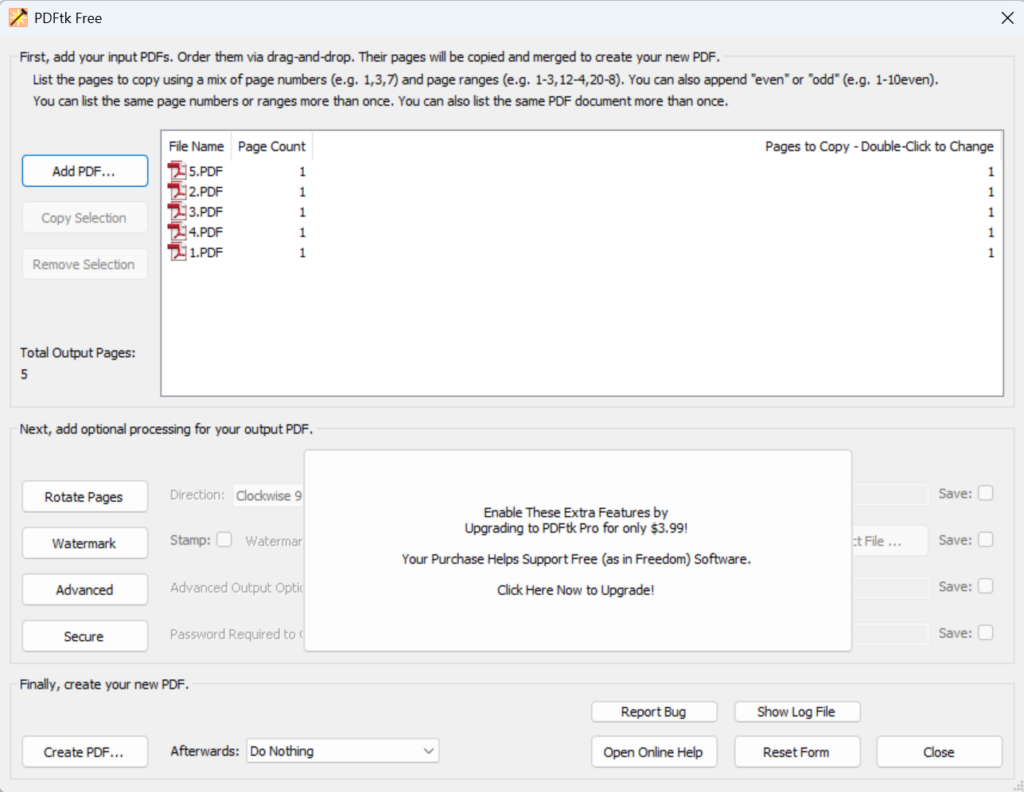 最近我有一个将扫描后的 PDF 合并的需求,最后使用了PDFtk 这个工具,网站是 https://www.pdflabs.com/tools/pdftk-the-pdf-toolkit/